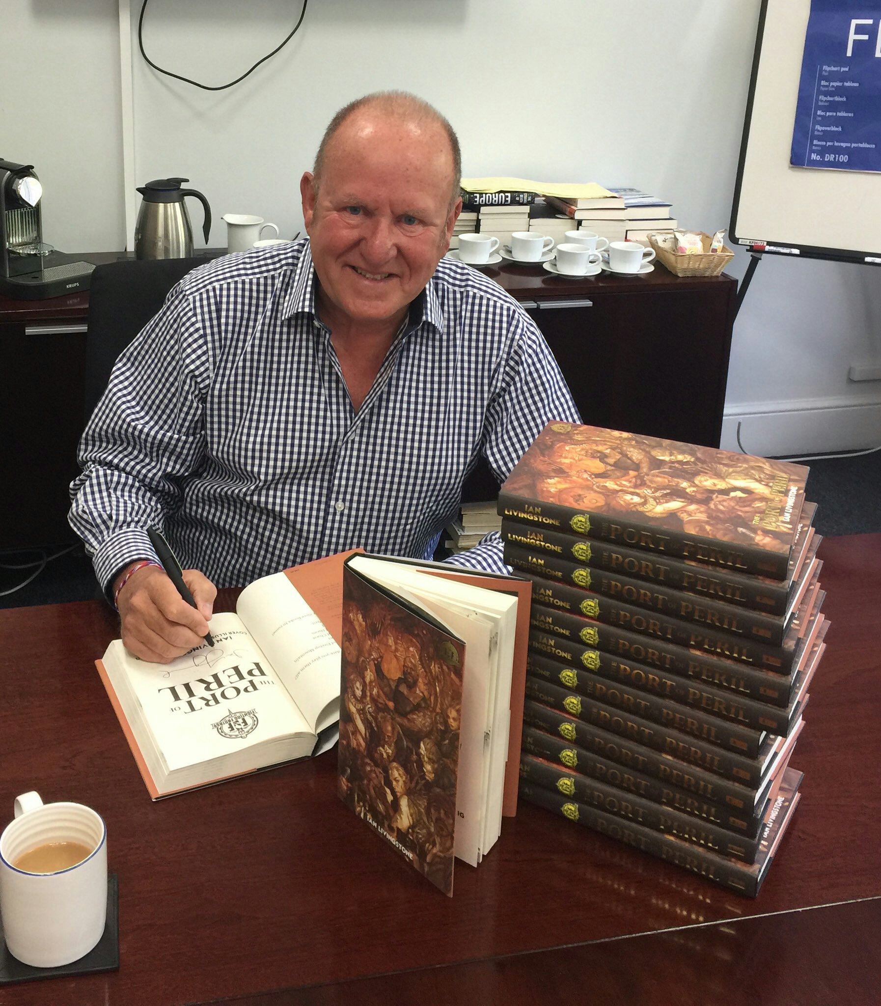 The Guv himself, Mr Ian Livingstone has been hard at work signing 500 hardback copies of the brand new adventure, Port Of Peril ready for sending out to all avid fans.