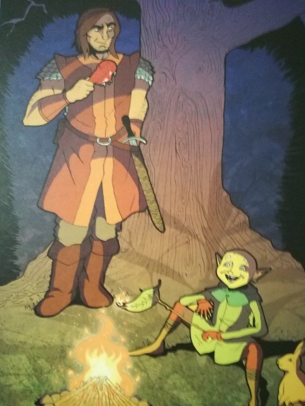 Speaking of the artwork. When you’re use to the likes of Russ Nicholson, Iain McCaig, Martin McKenna etc, this seems dummied down a lot. This is probably to appeal to the younger audience as well and it does indeed look somewhat cartoon. The picture below of the Chervah cooking for Darkmane is just far too twee, especially with bunny foo foo watching. Urgh!