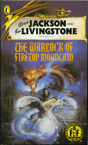 Upon returning to school, somebody set me on the right track saying that the tome was an accompanying work for a series of orange spined books by the same Author. Thankfully I found Shamutanti Hills, 3 copies of The Seven Serpents and one Crown Of Kings. Sadly they never had Khare – Cityport Of Traps but I would buy all four a few years in the future. And so, my fanaticism with the series was born and the following Christmas my mother would buy my first regular game book of the series, Star Strider. I reminded her thereafter I wanted to collect from Book1 onwards, so The Warlock Of Firetop Mountain would be my 5th adventure.